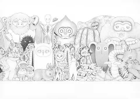 本展は、玄光社から2026年1月15日に刊行する作品集『せみにんげん』に収録された原画を中心に、近年の代表的作品が一堂に会す。本展「せみにんげん」では、技法を一新し、鉛筆による原画にデジタル彩色を組み合わせる新たな手法を採用し、自己の内面・記憶、社会構造を巡る旅を「せみちゃん」というキャラクターを通して、鮮やかにファンタジックに物語として描き出した。
