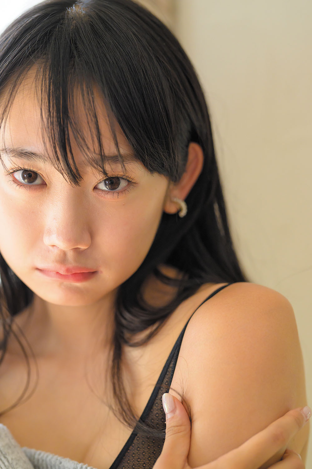 「肩紐をずらす」からの流れで撮ることのできるポーズです。肩ひもを落とすことに抵抗のあるモデルでも、肩を抱いたり、肩をすくめるというポーズなら特に問題はないでしょう。キャミソールやノースリーブの衣装なら、セクシーさや女性の丸みを見せることができます。