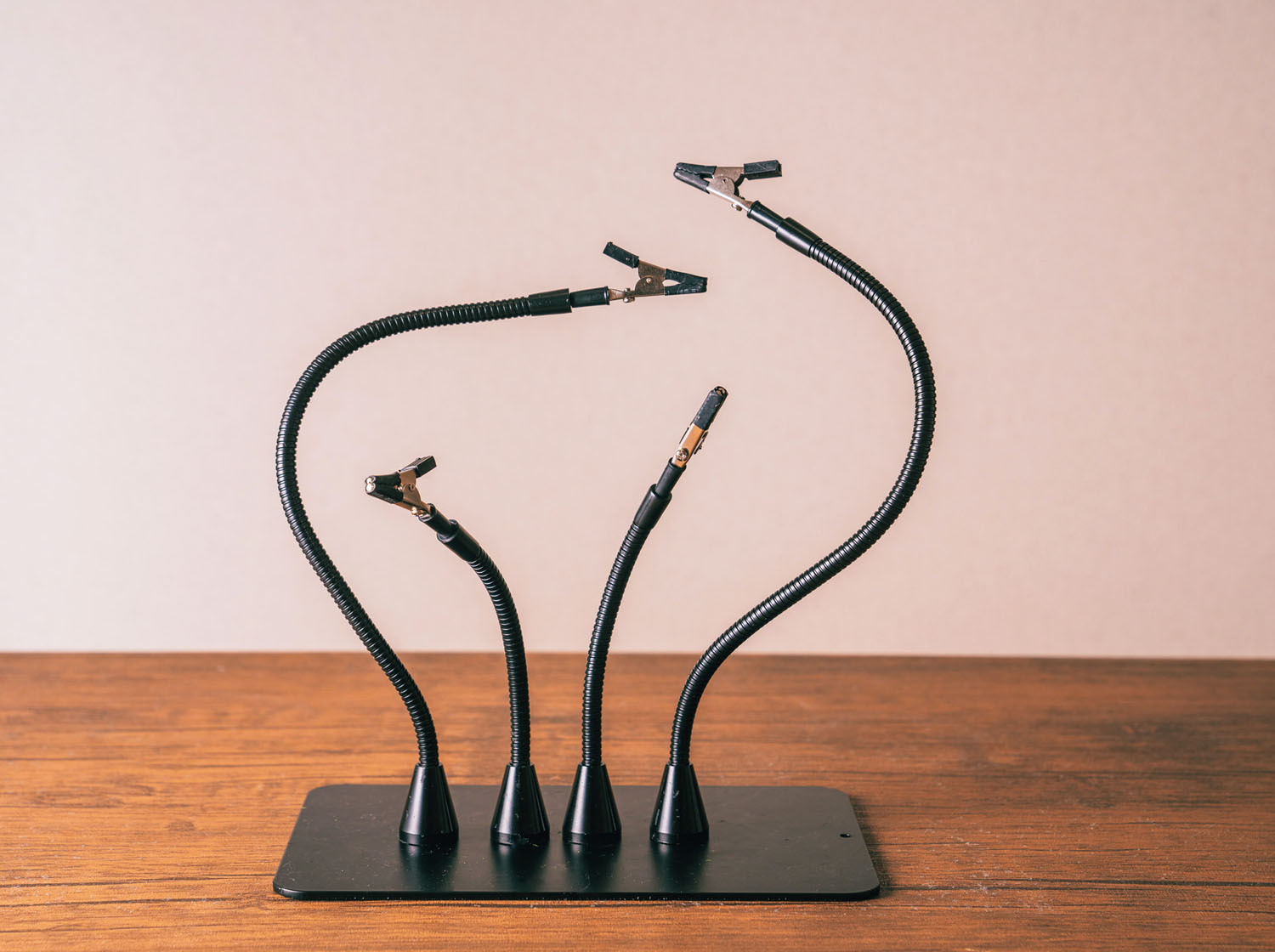 セッティング:フレキシブルアームとテグスでカヌレを吊るす