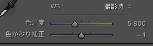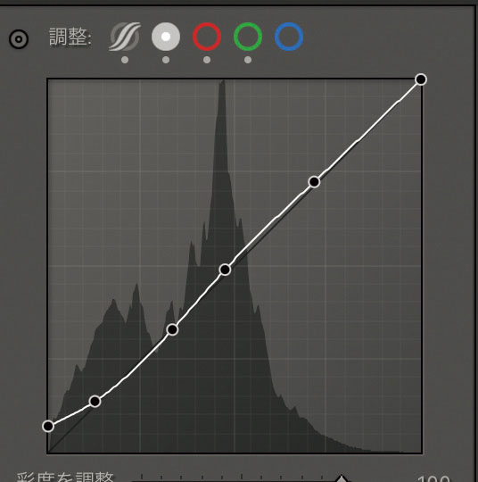 セピア色のエモい雰囲気をイメージして、色温度は高めに設定。撮影時に5,800Kに設定しています。トーンカーブは左下を少し持ち上げて黒をフェードさせ、カフェっぽい色合いに仕上げました。