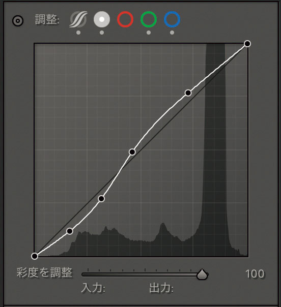 トマトの瑞々しさを出すことがゴール。基本補正ではコントラストとかすみの除去をプラスし、トーンカーブは中央より上を持ち上げてフレッシュさをアップします。最後にAIノイズ除去をかけて水の質感を綺麗に出します。