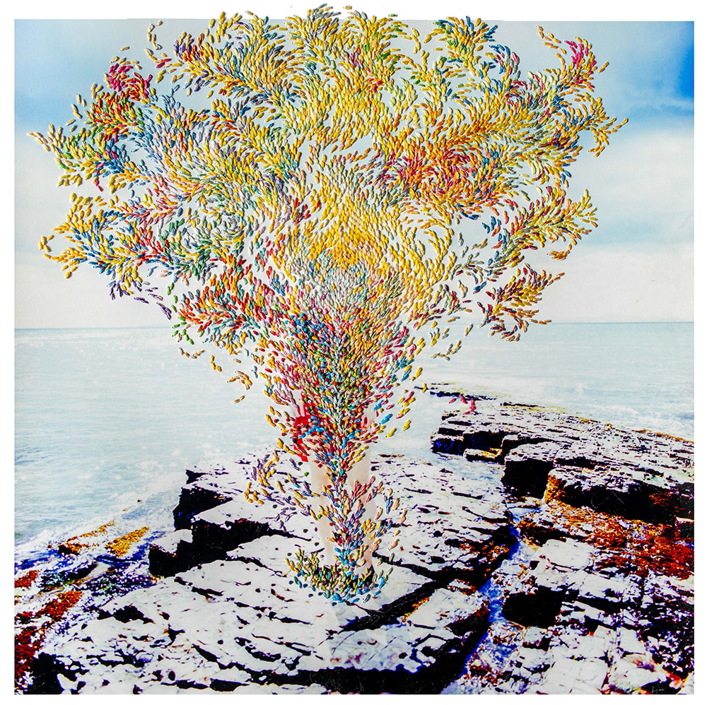 一方で澄毅氏にとっての写真は忘却の抵抗。いつか生を失ったものが忘れられ光となり「実体」を失うことに抗うように、澄毅氏は写真がプリントされた紙に刺繍を施す。糸により立体としての質量を持つ時、そこには「永遠」の片鱗がある。