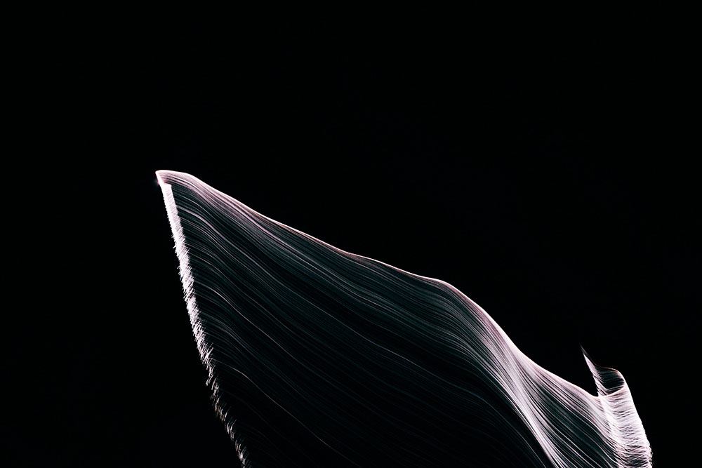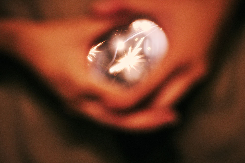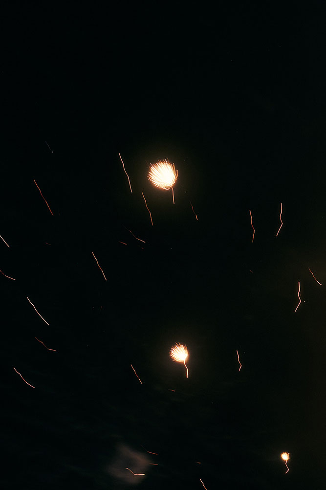 三度の妊娠に刻まれた光や声の残響が、そして消え去っていったはずの声が、心の中で反響しながら視覚イメージとして立ち上がっていく過程を記録するとともに、振動や痕跡として時間の流れに残った感情を写し留めた。光に照らされて浮かび上がる声のかたち⸺残響は、私の記憶と感情の共振である。人生の出来事が過ぎ去った歴史となった今も、声はいまだ虚空の中を漂っている。この写真日記は、花火の光の下で妊娠の経験を通して、消失と再生の物語を織りなしていく。